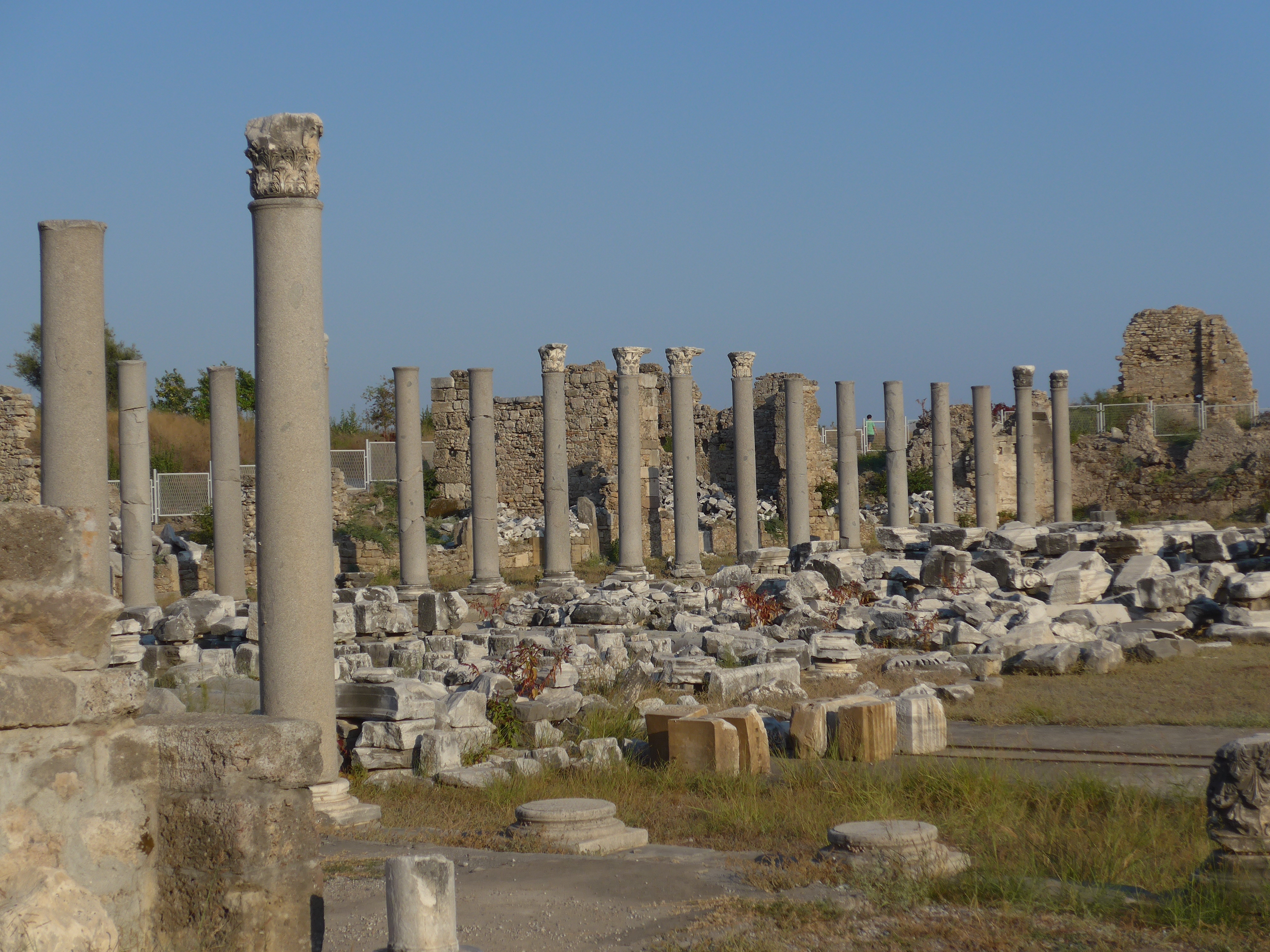Представляет собой отдельный древний город в 30-40 км от Анталии. Его главной и на сегодня единственной достопримечательностью считают амфитеатр. Это огромное сооружение, построенное во II веке и вмещающее почти 17 тыс. зрителей. Трибуны для просмотра зрелищных мероприятий расположены в виде ступеней, каждую из которых отделяет расстояние в 1,5 м.