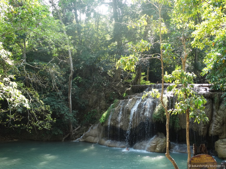 Но кроме столь печальной истории Канчанабури и его окрестности богаты удивительными красотами. Вы просто обязаны посетить семиуровневый водопад Эраван (Erawan)! Экскурсия туда стоит 800 бат. Вас свозят на водопад, в пещеру и покатают по Дороге смерти, а еще покормят. Если же вы хотите насладиться водопадом и потратить на него столько времени, сколько вам необходимо, отправляйтесь на автостанцию и покупайте билет за 50 бат. Автобус будет маленький (на нем вы увидите надпись Erawan), и если у вас высокий рост и длинные ноги, вам будет несколько некомфортно. Дорога займет полтора часа. Но поверьте, все, что вы увидите в национальном парке, окупит все ваши страдания!