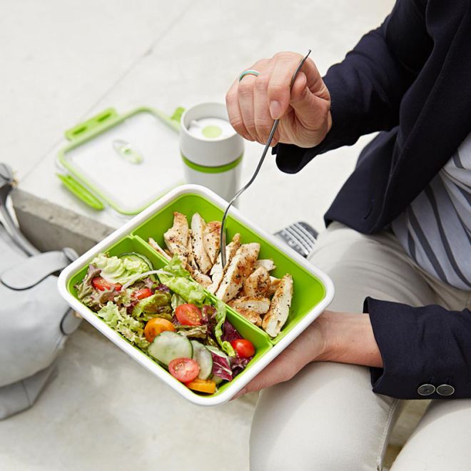 Можно взять запеченный картофель (но ни в коем случае не пюре и не фри!), а к нему нарезать в ланч бокс овощной микс — огурцы, помидорки черри, болгарский перец, морковку, сельдерей, капусту. Ни в коем случае сразу не солить и употребить тоже в первые сутки поездки.