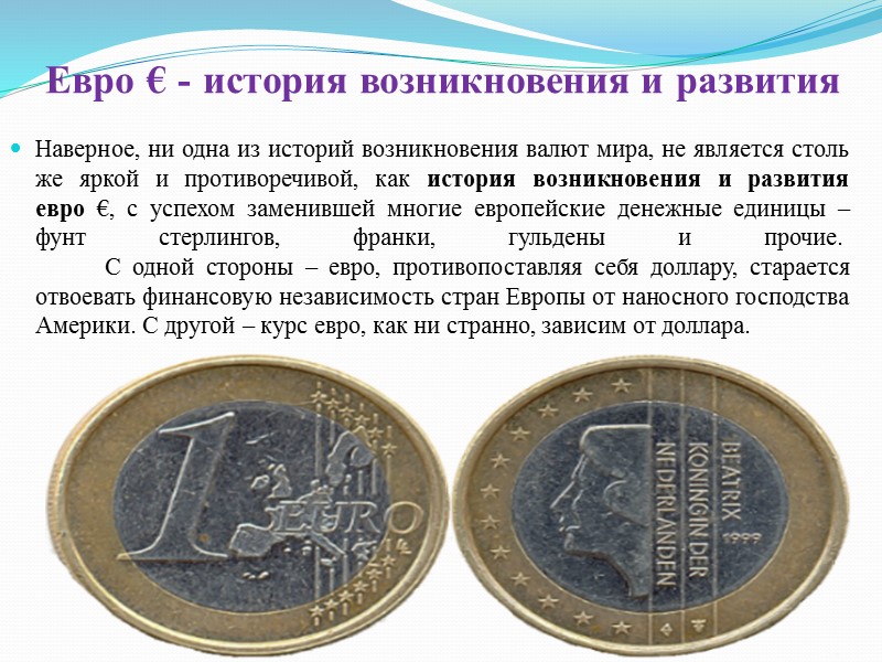 Страны, использующие эту валюту: Аландские острова, Андорра, Австрия, Бельгия, Кипр, Финляндия, Франция, Французская Гвиана, французские южные территории, Германия, Греция, Гваделупа, Святой Престол (город-государство Ватикан), Ирландия, Италия, Люксембург, Мальта , Мартиника, Майотта, Монако, Черногория, Нидерланды, Португалия, Реюньон, Сен-Бартелеми, Сен-Мартен, Сен-Пьер и Микелон, Сан-Марино, Словакия, Словения, Испания, город-государство Ватикан (святой престол),