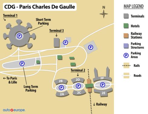 Схема парижского аэропорта довольно сложная: он состоит из трёх основных терминалов и нескольких субтерминалов, расположенных на большой территории.