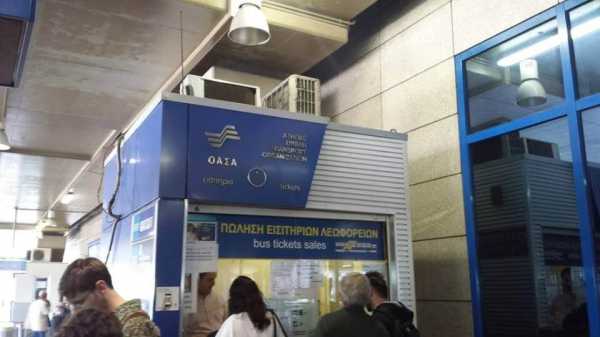 Когда выйдете из аэропорта Афин – поверните направо. Идите по тротуару прямо, и вы увидите небольшую голубую кассу. Билеты можно купить здесь. После покупки продолжайте идти в том же направлении и ищите знак Х95.