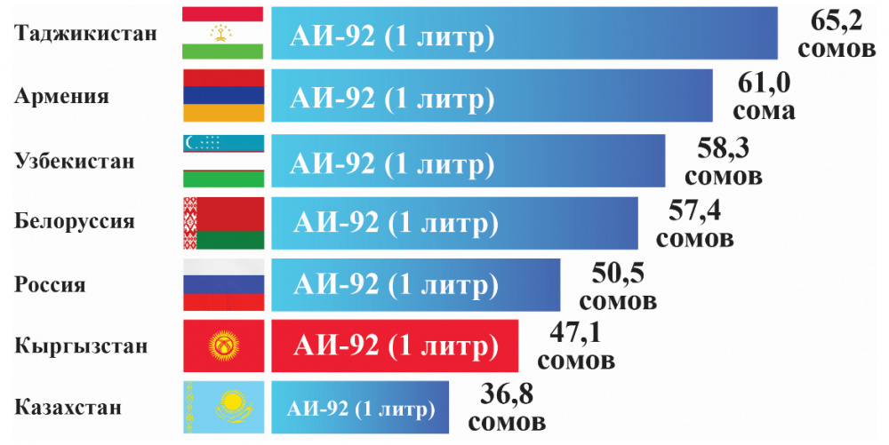 В Бишкеке бензин марки АИ-95 стоит в среднем 57 центов. Это данные крупнейших сетей автозаправочных станций Кыргызстана. С ноября почти все виды топлива подорожали на 10-14 %.