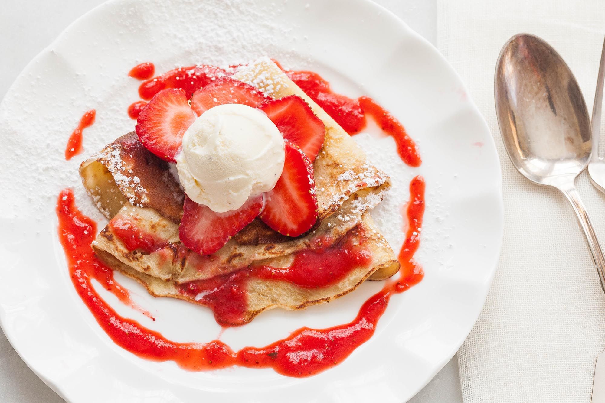 Crêpes sucrées (сладкие блины) — более сладкая сестра пикантных блинов. Их можно начинить чем угодно: от масла и сахара до Нутеллы и соуса Гран Марнье. Они всегда кажутся вкуснее, когда их покупают в прилавке на тротуаре или в маленькой витрине, чем в сидячем ресторане.