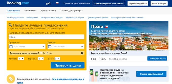 - предоставление процентов за бронирование на личном сайте по партнерскому соглашению с Booking.