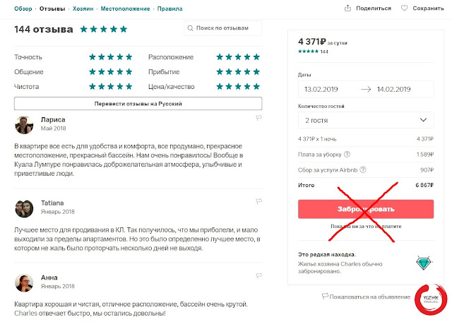 Отзывы и оценка – чем больше отзывов, тем лучше, так как верить одному субъективному мнению сложно, люди бывают разные. А выборка из 12 (как у Дэвида) – достаточна, в них стоит обратить внимание на те нюансы, о которых умалчивают хозяева: скорость wi fi, расположение относительно остановок общественного транспорта, близость супермаркета, аптеки или пляжа (если курортный город) и пр.