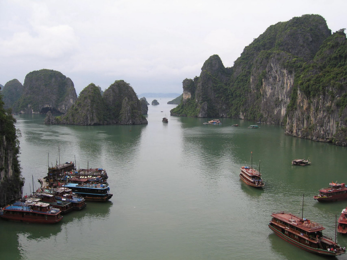 Фотографии с четырехчасового круиза по бухте Халонг. Немного не повезло с погодой. Было пасмурно.