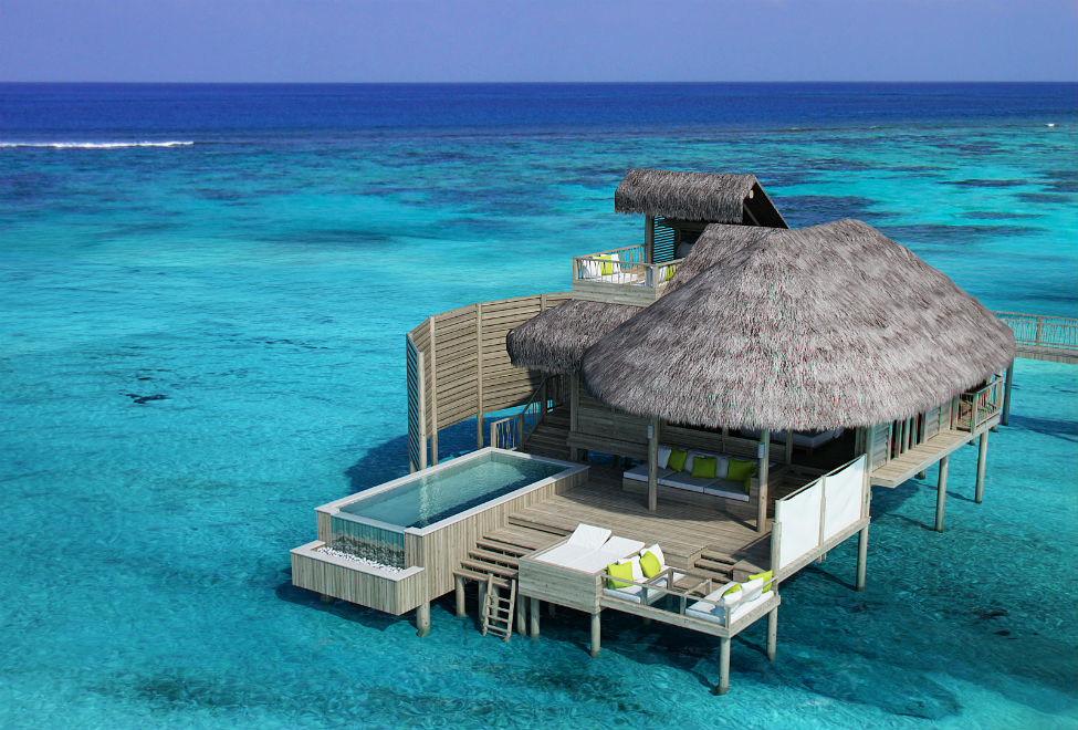 Bliss Dhigurah – бутик-отель премиум-класса на берегу моря, на крыше джакузи, балконные гамаки, фантастический ресторан Hermits и кофейня.