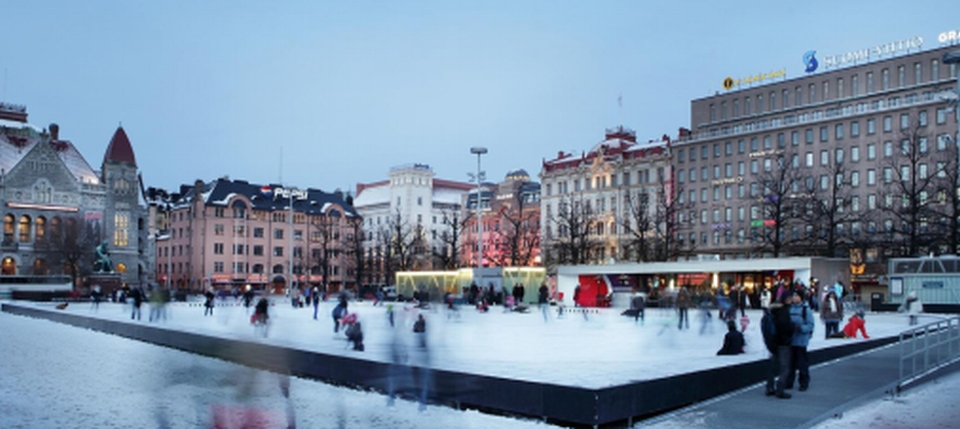 Рядом с железнодорожной станцией вы найдете Ледовый парк Хельсинки . Это отличное место, чтобы проверить свои навыки катания на коньках, особенно восхитительное в вечернем освещении.