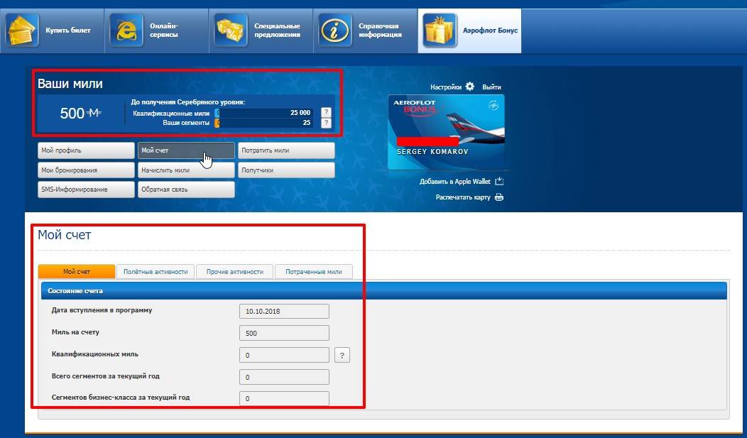 4.2.1. Счет в программе «Аэрофлот Бонус».