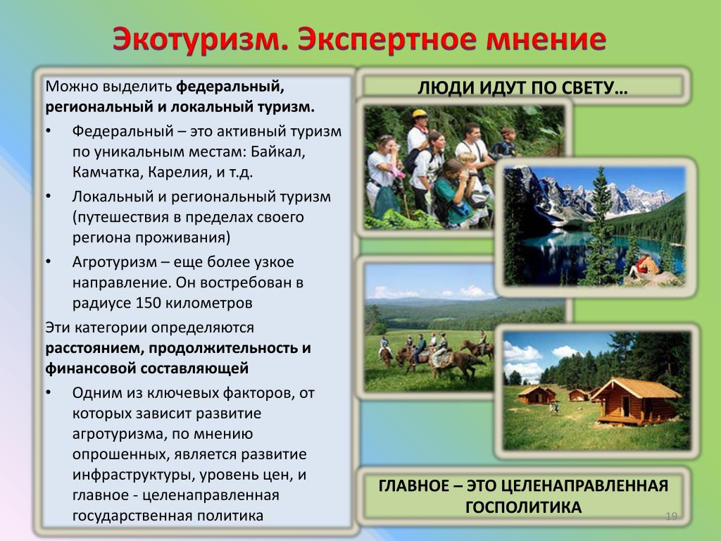 гостям и хозяевам. Со стороны принимающей стороны экотуристическое мышление создает ценность для местных жителей и отрасли, и они должны помочь доставить посетителям замечательные впечатления, повышая их чувствительность к местным экологическим, политическим или социальным проблемам.Преимущества и причины, почему экотуризм растет