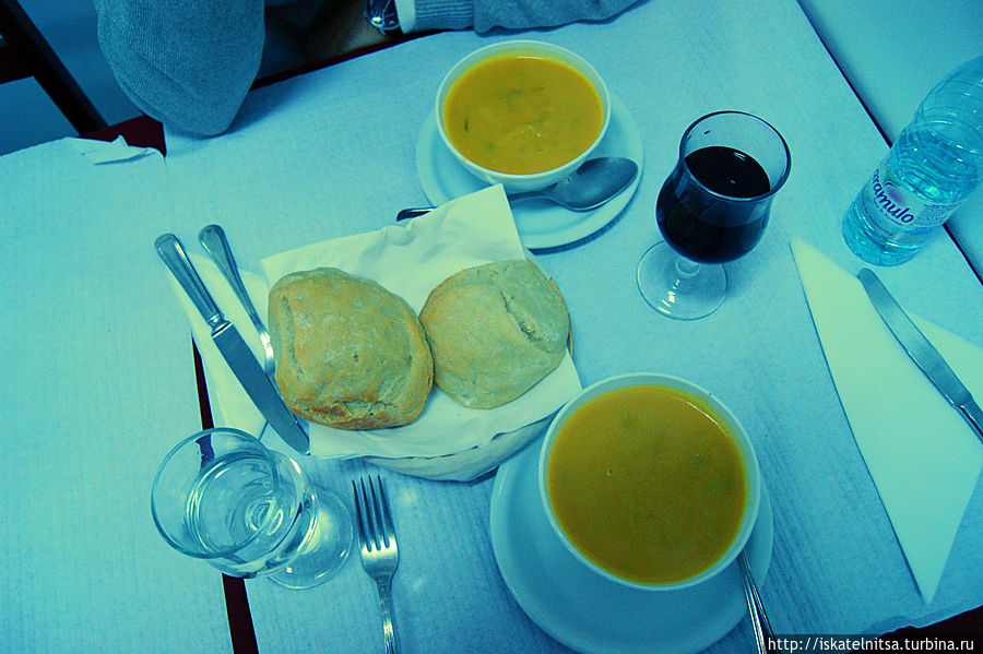 На выбор огромное количество выпечки, разнообразные булочки с начинкой и без, с изюмом, шоколадом, треской, чоризо (португальской колбасой). А еще здесь очень вкусные традиционные пирожные с заварным кремом. Но поесть в кафе можно не только выпечку. В меню много блюд местной кухни, морепродукты, советуем попробовать свежий супчик дня. Стоит он недорого, всего 2 €, но всегда очень вкусный.