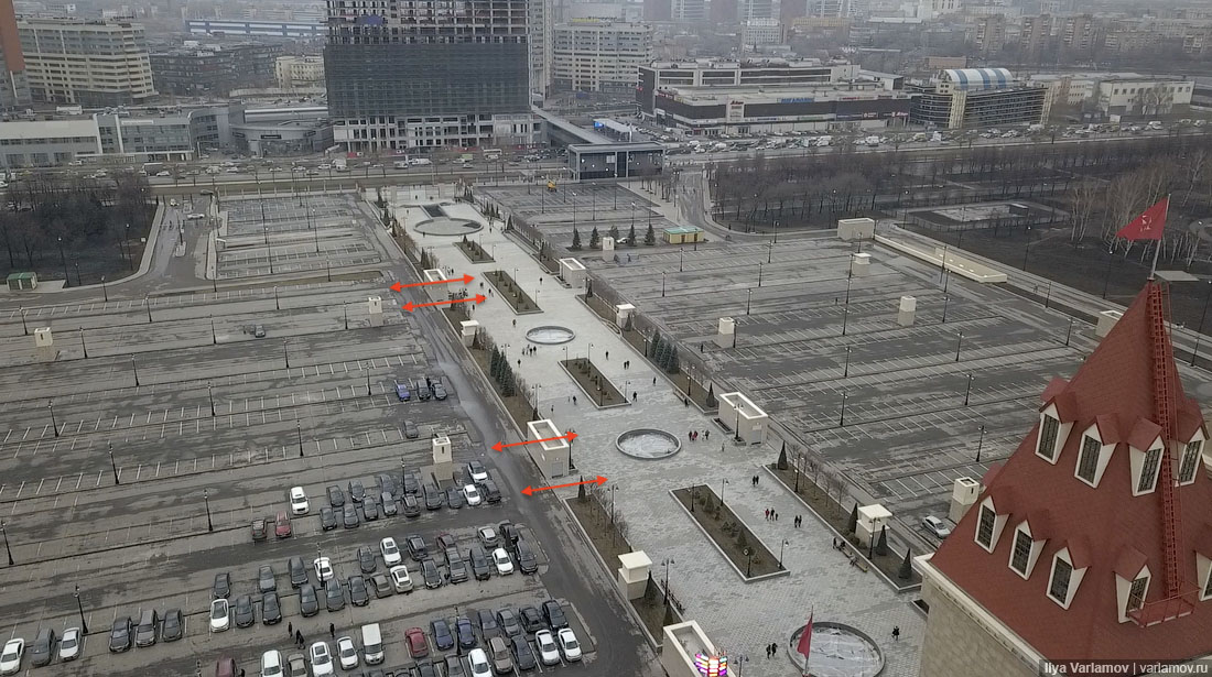 Но самый пиздец – это последние метры до аллеи. Я стрелками показал возможные заходы на пешеходную зону.