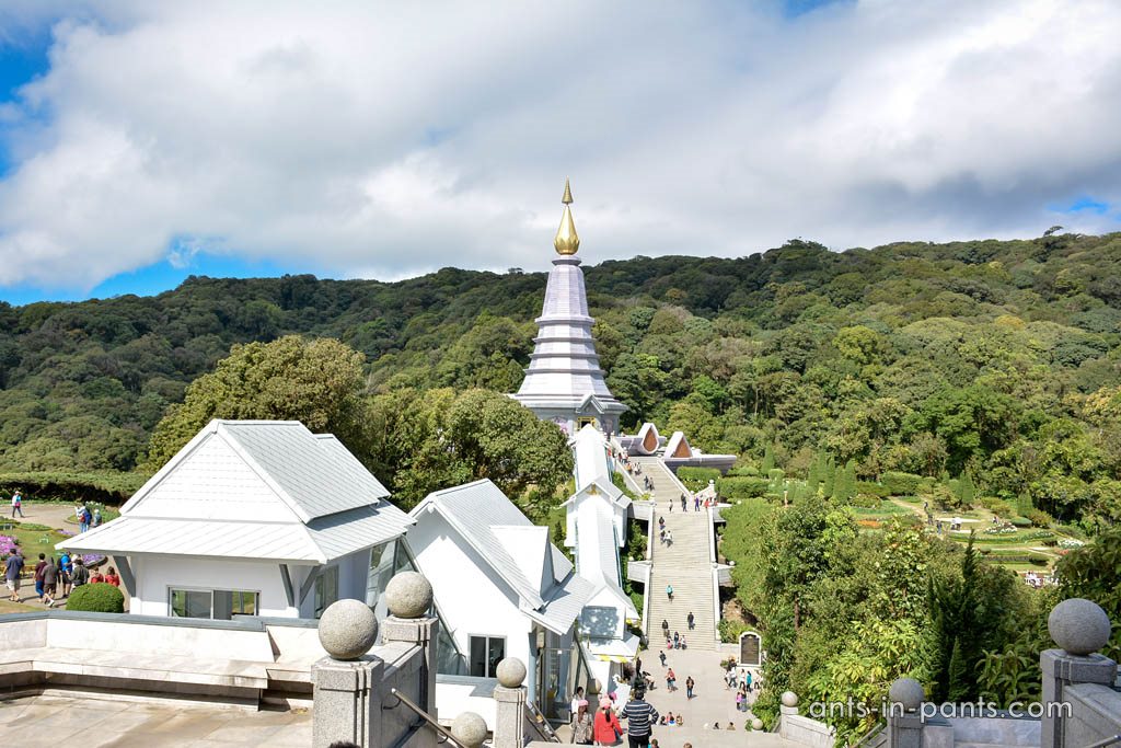 И, наконец, вершина. Та самая, которая вдохновляет многих на путешествие по северному Таиланду. Это место не разочарует того, кто поддался соблазну и приехал сюда. Особенность вершины Дой Инханон в том, что здесь построены две ступы, расположенные одна напротив другой. Коричневая Ступа Короля и серая Ступа Королевы смотрят друг на друга со своих возвышенностей, которые покрыты изумительными коврами из цветов. Ни одна, даже самая эффектная фотография не передаст мистический характер этого места.