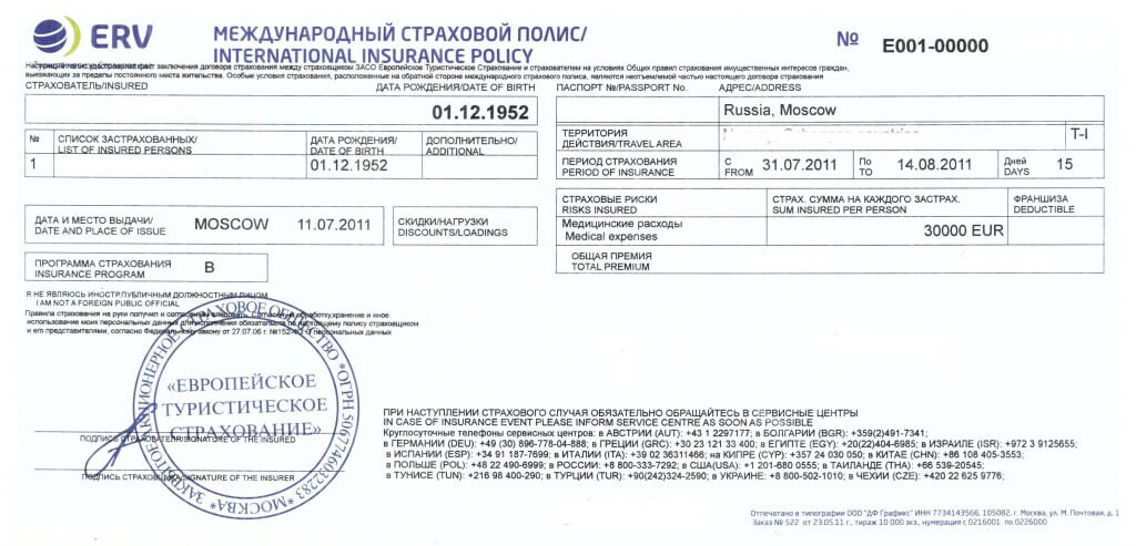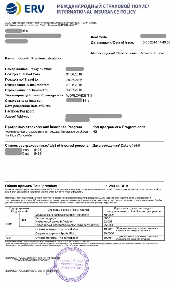 Приобрела годовую страховку для выезжающих за рубеж в компании ERV. Поскольку поездка была длительной, стоимость страховки играла немаловажную роль.