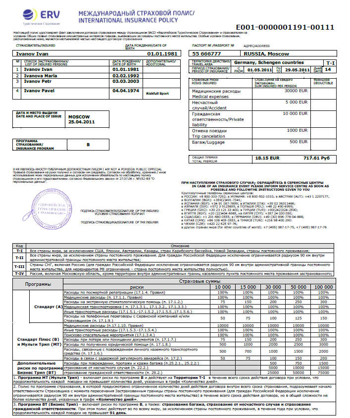 Ну и, как водится, на определенном шаге среди прочих upsell-опций подсунули возможность оформить полис от отмены поездки. Оформил, № IIIP104580. Оказывается, это полисы ERV по программе «отмена поездки», которая, как ни парадоксально, не включает…