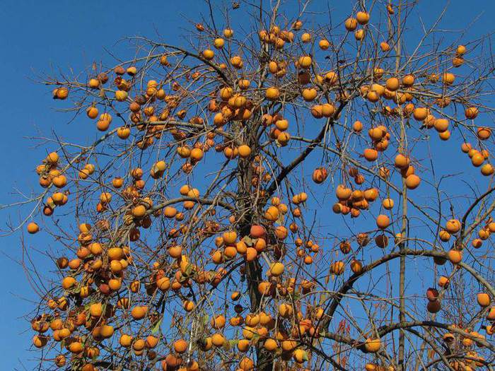 Плоды хурмы в Крыму начинают созревать с октября по ноябрь. У местной хурмы мягкая, сочная мякоть и крупные овальные косточки. Существует несколько сортов хурмы: