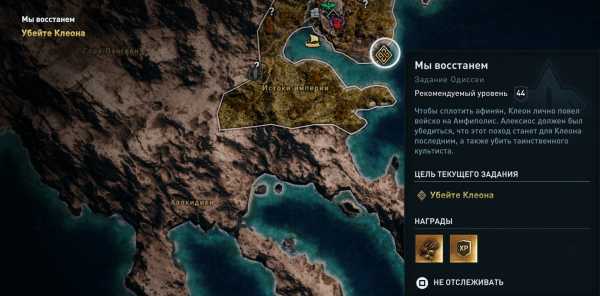 После того как убьете Химеру вы получите первую наводку о том, где скрывается этот культист. Вторая подсказка спрятана в шахте, которая на юге Аттики. Если не хотите искать эти подсказки, то сразу отправляйтесь к месту, которое показано на скриншоте.