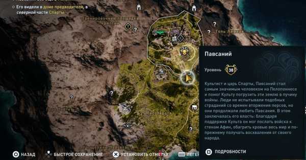 Павсаний — мудрец Пелопоннесского союза и царь Спарты. Вы его найдете в спартанском храме. На карте, которая ниже покажу где находится это место.