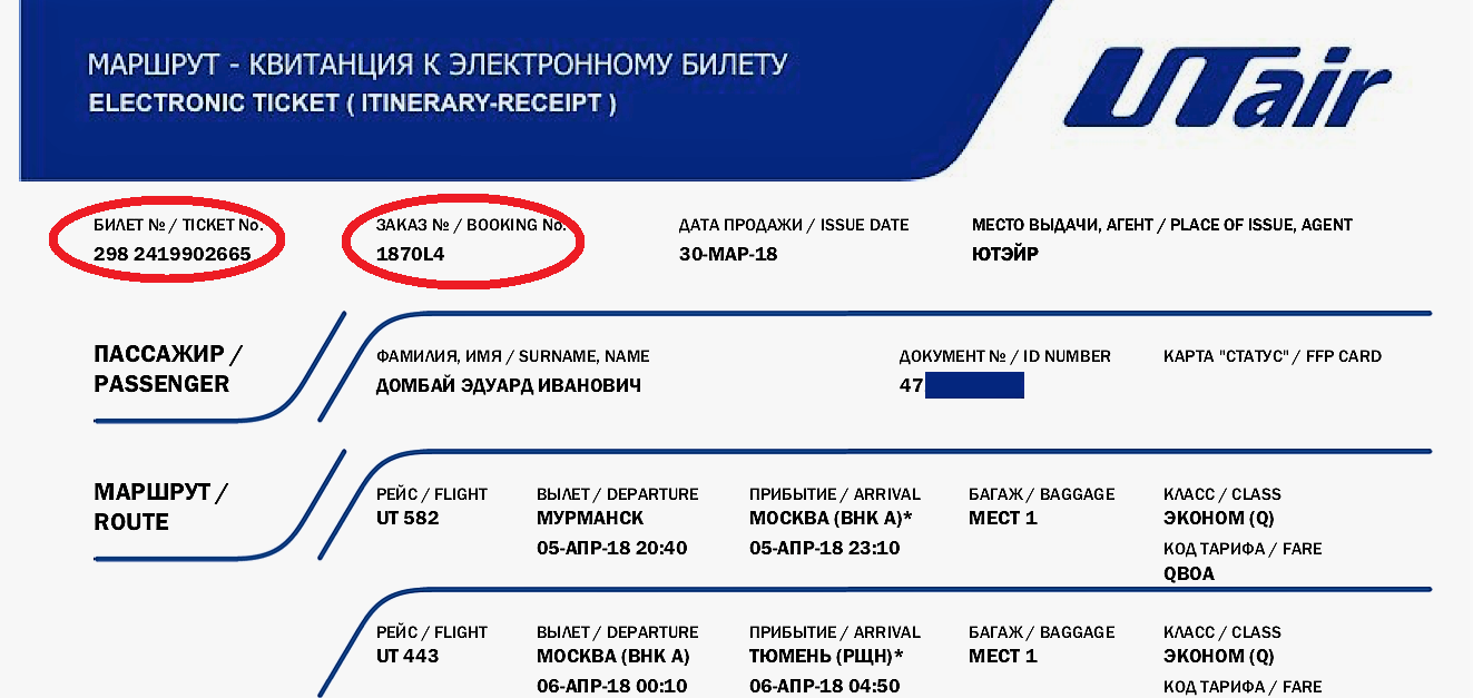 Для получения информации по заказу укажите: номер бронирования и фамилию пассажира. Номер бронирования — 6-ти буквенно-цифровой код, указанный на билете или маршрут-квитанции. Например, 123АБВ.
