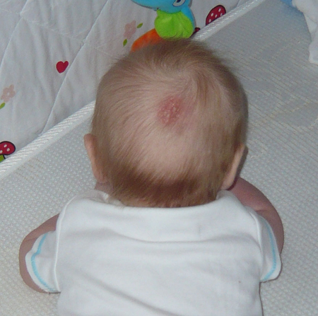 Гемангиома представляет собой доброкачественное сосудистое новообразование, которое может появиться у младенцев вскоре после рождения. Чаще всего гемангиома локализуется на коже головы, в том числе на затылке.