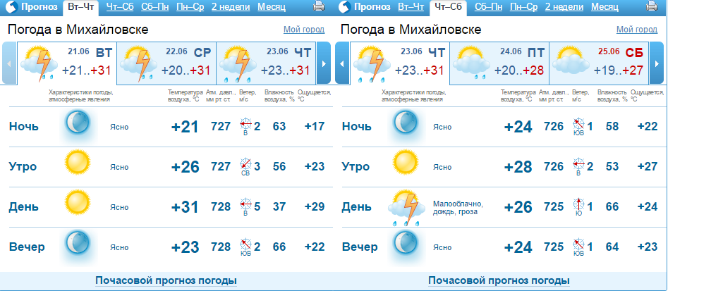 Местами грозы. Понижение 25C. Ветер Ю и переменный. Вероятность дождя 50%.
