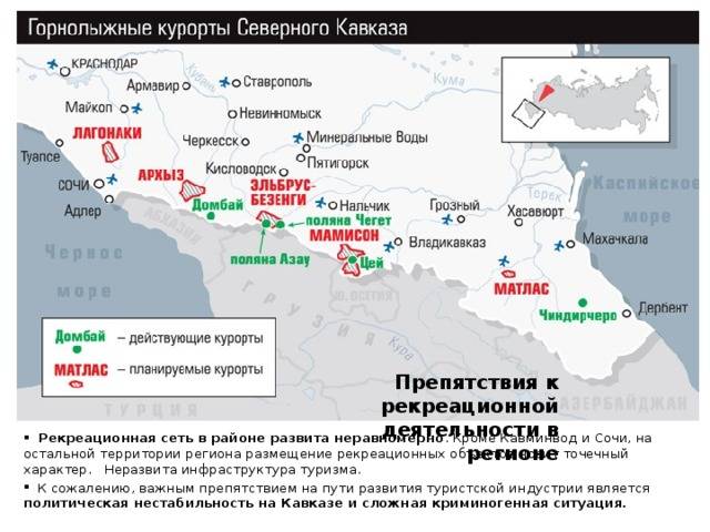 Россию можно назвать одной из «горных» стран мира. Кавказ, Алтай, Урал, Приэльбрусье — все эти горные системы поражают своей красотой и величием. Именно здесь находятся основные горнолыжные курорты России. В список можно добавить невысокие сопки Хибина, склоны вулканов Камчатки, Красную поляну в Сочи и другие удивительные места для катания.