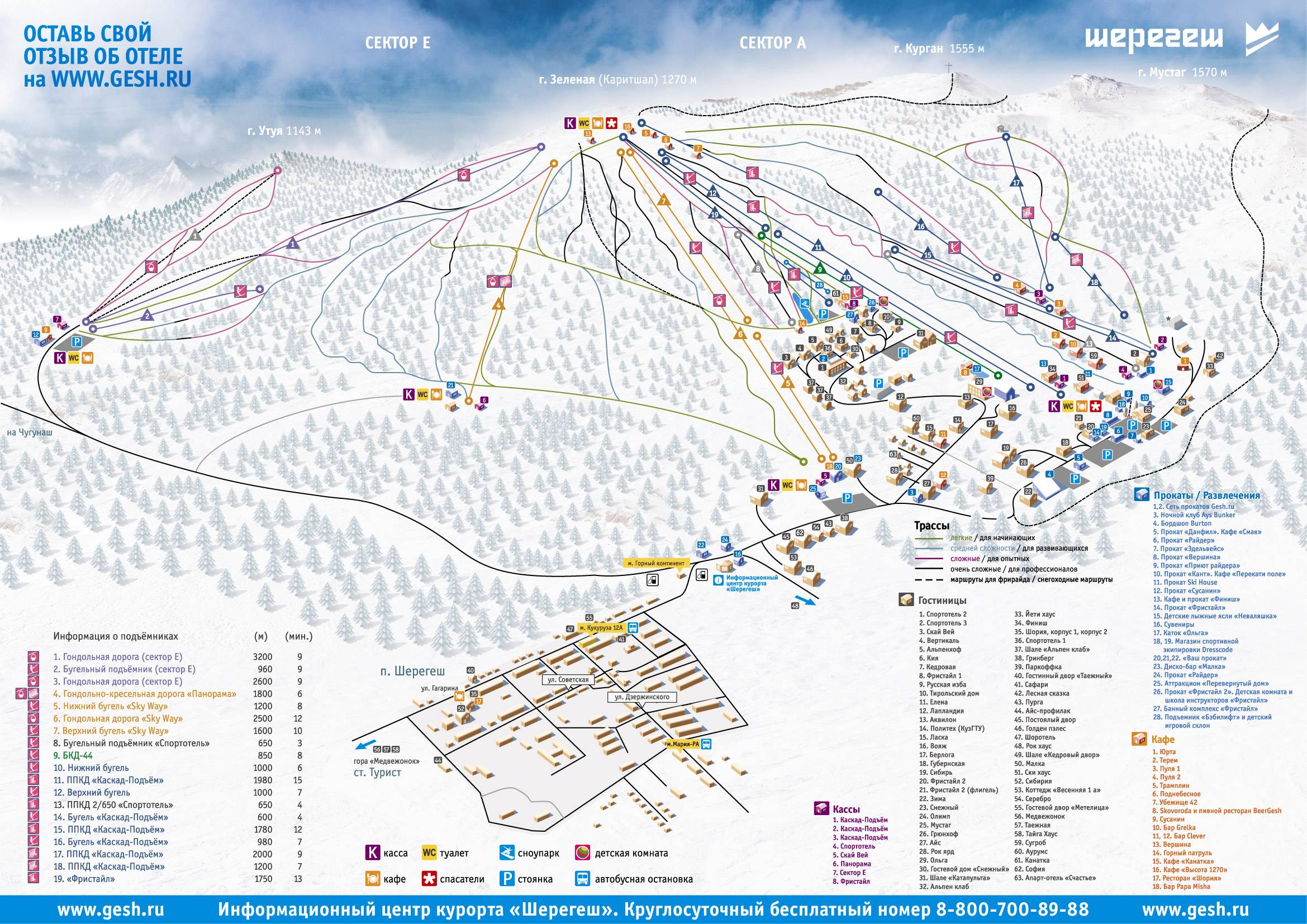 | Трассы | 3 зеленые, 5 синих, 6 красных, 2 черные тюбинг, фрирайд, сноупарк |