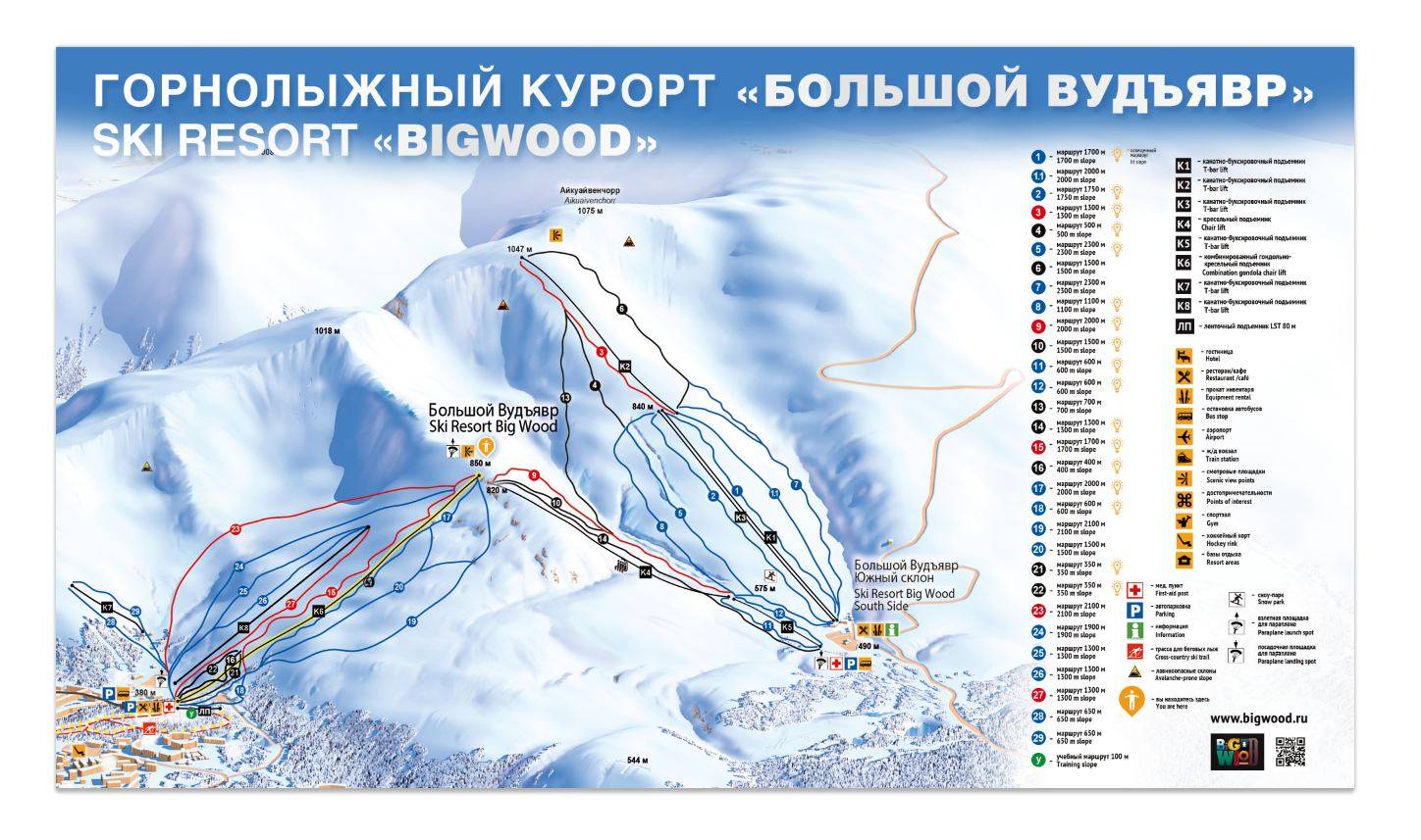 | Название курорта | Названия и номера трасс |