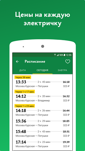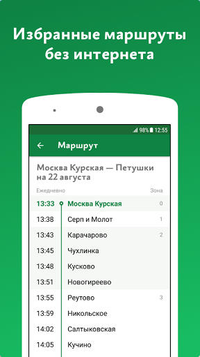 Продажа билетов на пригородные поезда в несколько кликов для себя, своей семьи и друзей. Билеты продаются без комиссий и сборов. Оплата банковской картой.