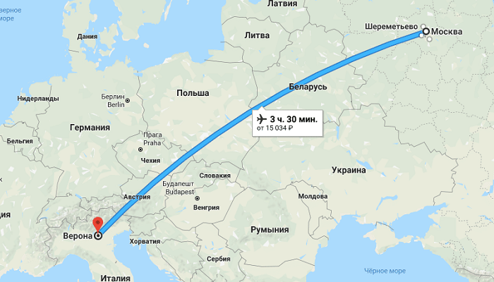 Общая информация об авиамаршрутеРасстояние от Москвы до Сорренто: 2389.44921875 км.