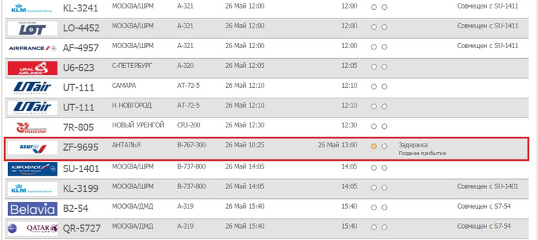 Аналогичная ситуация и у других перевозчиков, летающих из Москвы.