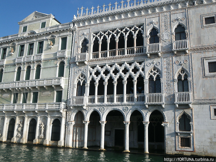 Правдивость этого утверждения можно заметить, внимательно осмотрев внешний облик дворца Ка’ д’Оро в Венеции. Удивительного в этом ничего нет, если вспомнить, что он был возведен, как и многие городские строения, на фундаменте старинного дворца Зено.