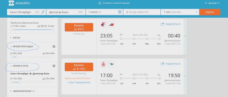 Сайт-агрегатор способен самостоятельно подобрать стыковочные рейсы и выдать вам уже готовый результат.