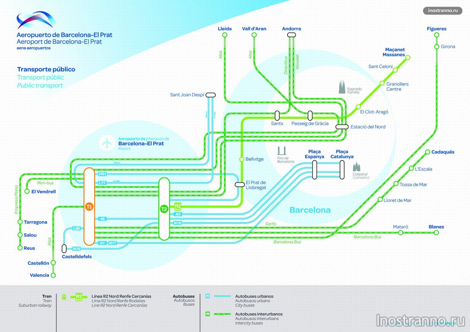 В Барселоне есть три станции метро/поезда, где вы можете сесть на линию R2 Nord до аэропорта Барселоны.