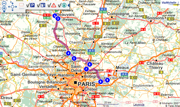 - Остановки в аэропорту Шарль де Голль: Терминалы 1 (выход 8) и 3 (автобусная остановка Roissypole), TGV станция возле терминала 2F.