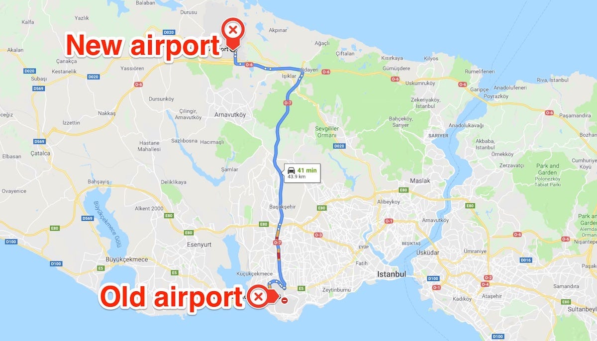 Новый аэропорт и аэропорт Сабиха Гекчен на карте СтамбулаДобраться из аэропорта, используя трансфер отеля