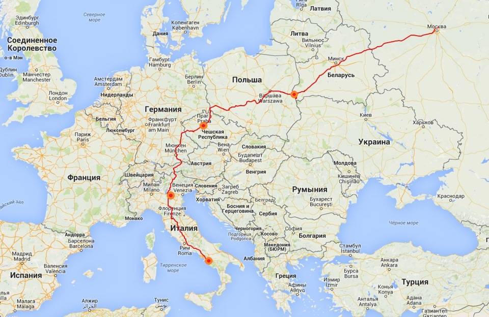 Самая быстрая поездка из Москвы в Прагу на поезде занимает 30.