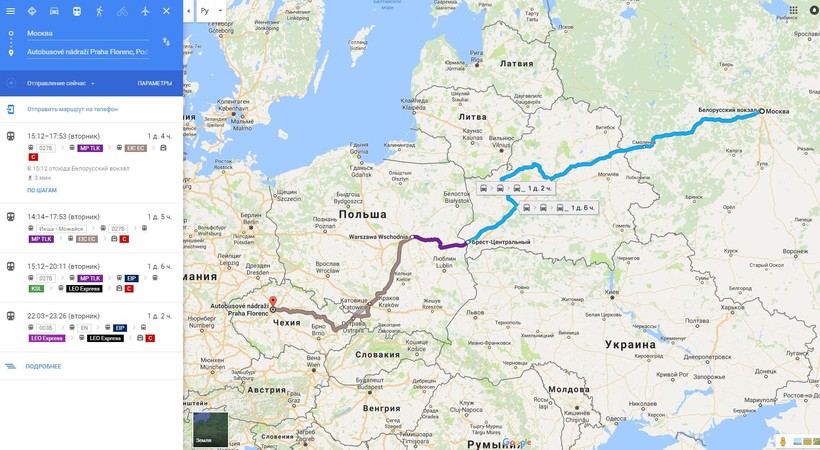 ✓ С каких станций отправляются автобусы из Москвы в Прагу?