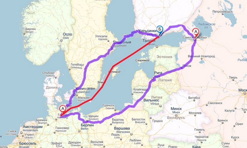 Самый короткий маршрут через Балтийское море в Финляндию идет из Таллинна, Эстония, в Хельсинки. Расстояние между двумя столицами всего 82 километра. Планы соединить два города самым длинным в мире подводным туннелем не осуществились, и вряд ли в ближайшее время осуществятся.