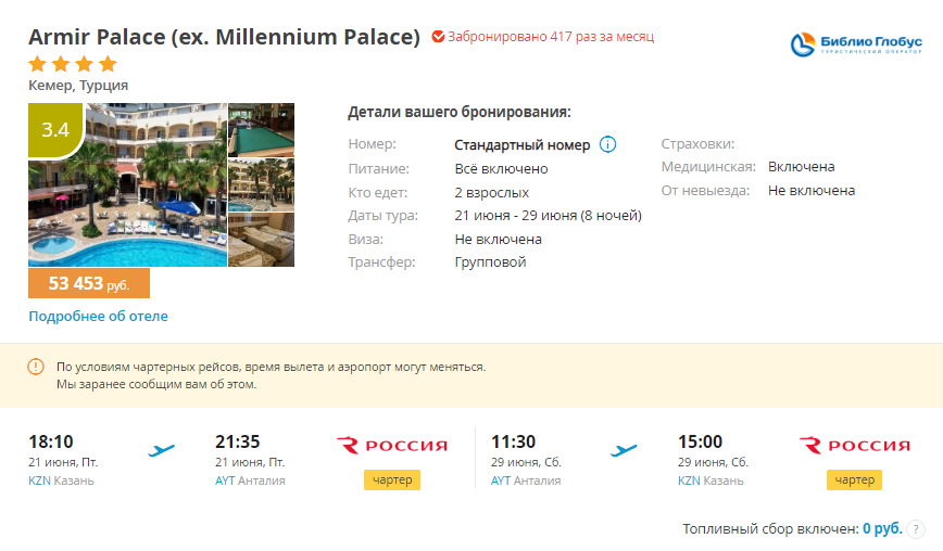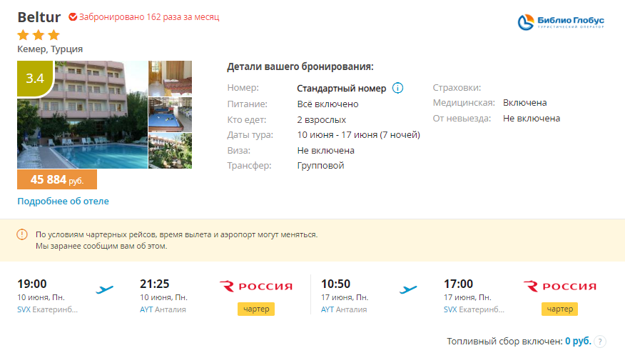 - ✔ Вы летите регулярным рейсом в удобное время, а не чартером, которые вечно задерживаются и съедают весь первый день.