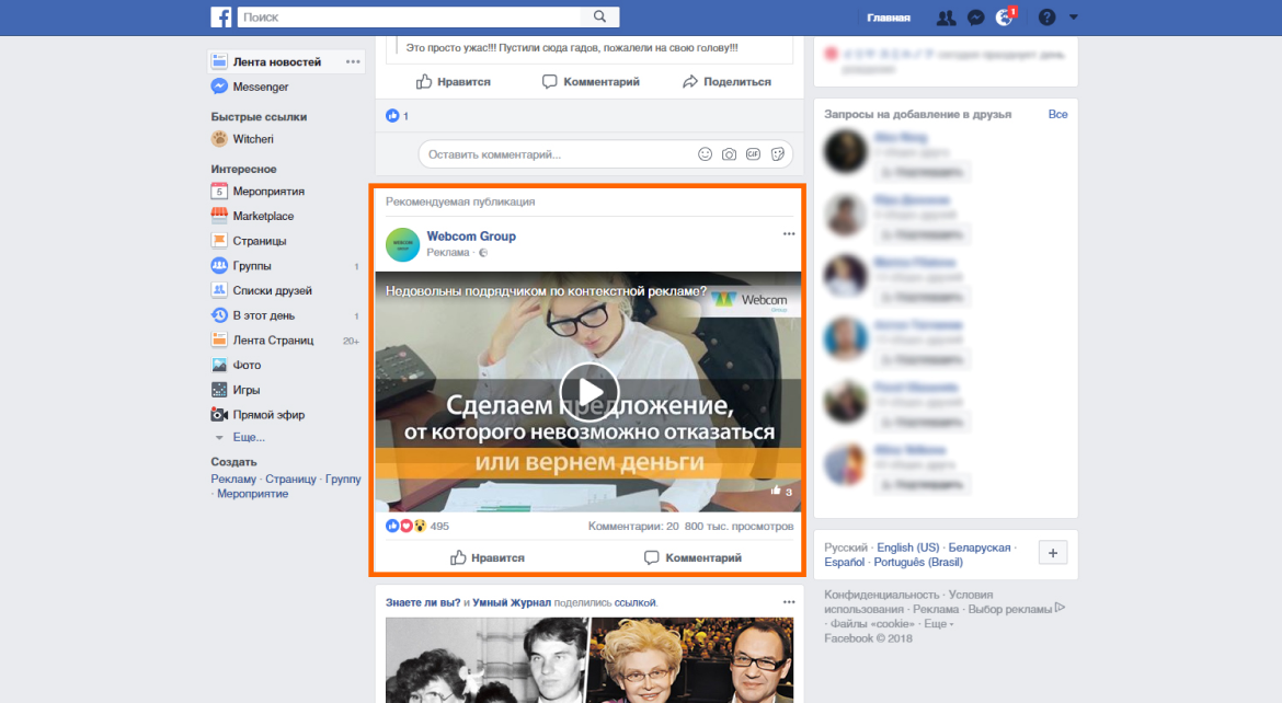 В качестве примера рекламы на Facebook для начинающих это отлично.