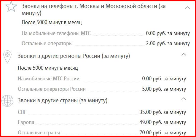 Вот «обычные» дополнительные тарифы для всех остальных карт: