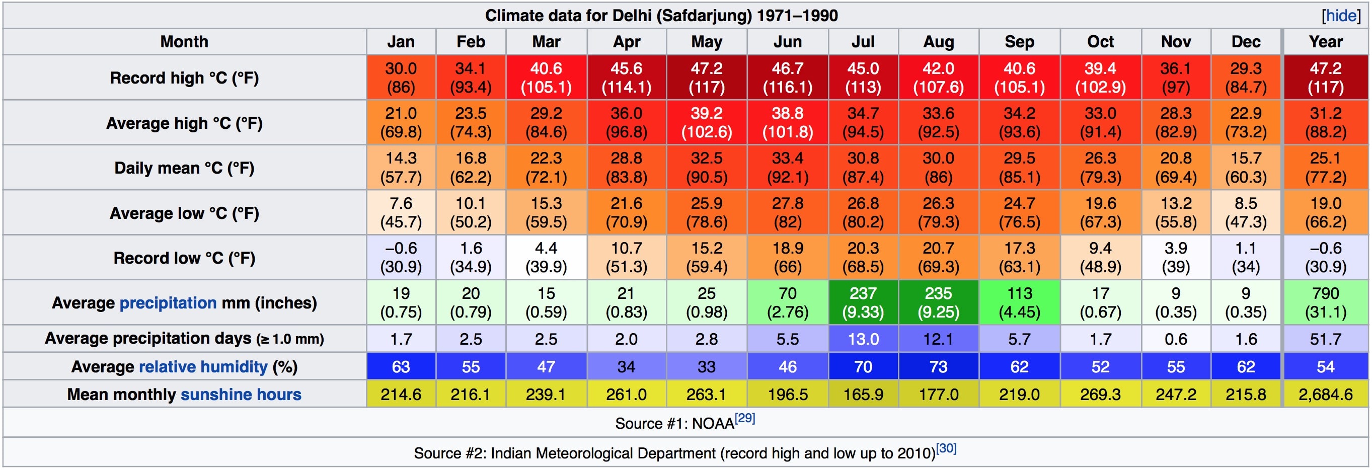 * Солнечные часы — показатель, отображающий усредненное количество часов за день, в течение которых прямые солнечные лучи достигают поверхности земли. На данный показатель влияют как длина светового дня, так и облачность в дневное время.