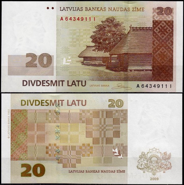 | 20 латвийских лат | 20 латвийских лат — оборотная сторона |
