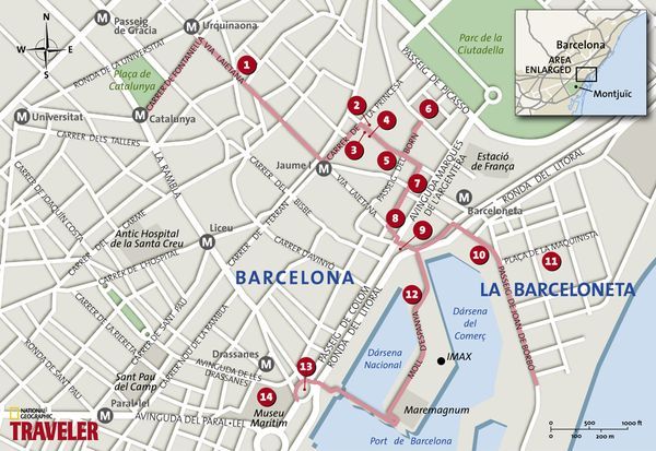 | Plaça Catalunya | Port Olimpico | Rambla de Catalunya | La Rambla — (Las Ramblas) |