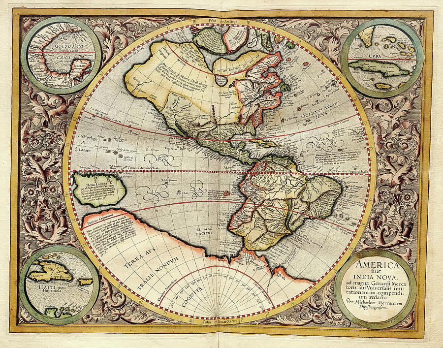 С расстояния, столь же физического, сколь и культурного, европейцы наносили на карту Америку бесчисленными способами; как земля обетованная и как вновь обнаруженная добыча. Ниже представлена краткая подборка старинных карт Америки.