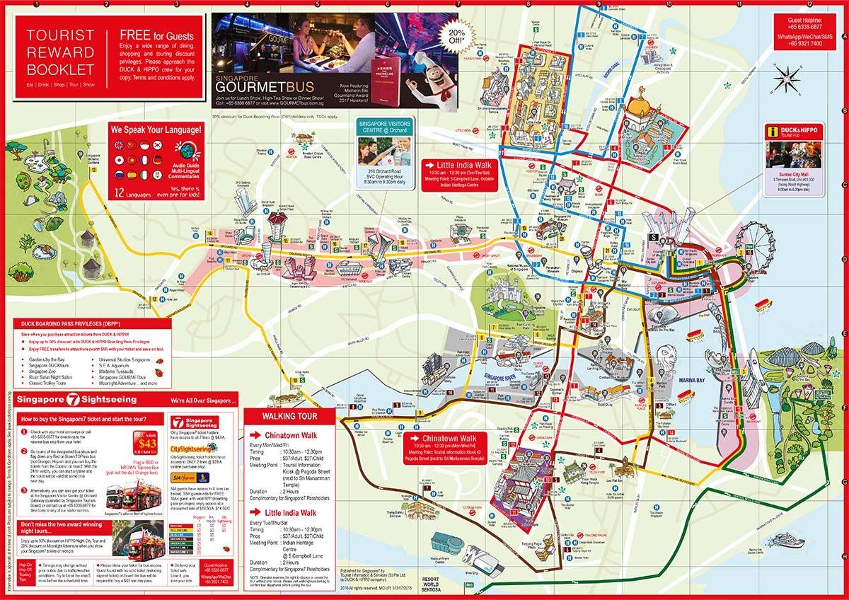 В силу особенностей местной географии и истории все значимые достопримечательности разбросаны по острову весьма хаотично. Официально Сингапур разделен на 28 районов, в каждом из которых можно найти что-либо интересное. Исторически принято выделять Колониальный район (Colonial District), Центральный деловой район (Central Business Distric, CBD, или Financial District), Китайский квартал (Chinatown, впрочем, часть его простирается и в CBD), Арабский квартал (Arab Quarter), Малую Индию (Little India), Орчард-роуд (Orchard Road), прибрежный район Марина-Бей (Marina Bay), Джуронг (Jurong) и островные районы — Сентоса (Блаканг-Мати), Убин, Теконг и так далее. Границы этих регионов весьма условны, но в силу небольших размеров всего острова это не особенно и важно. Единственную сложность при ориентации здесь составляет лишь повсеместное использование то малайских, то китайских или европеизированных названий, но местные жители свободно ориентируются в этом многообразии и всегда рады помочь туристу.