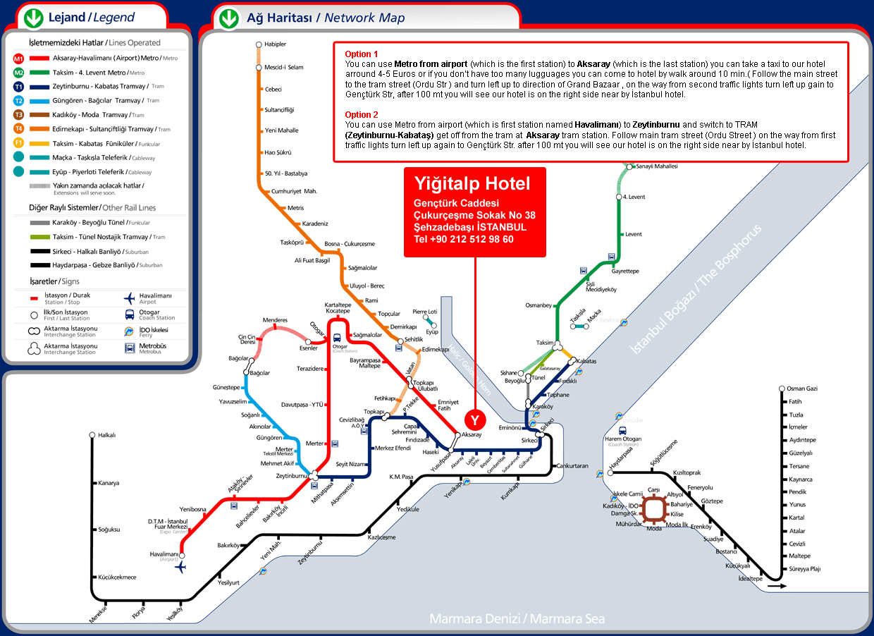 - Вы можете пересесть со станций Yusufpaş M1 и M1kürtapBaşA Yeanik Линии метро Еникапы-Киразлы.