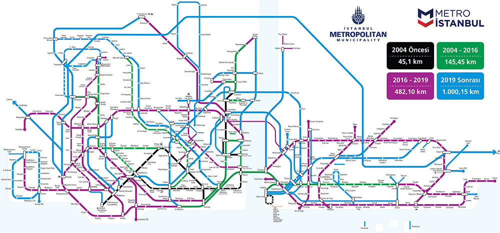Хоть Стамбул и гордиться древним фуникулером Tünel образца 1875 года, но сегодняшняя развитая инфраструктура была заложена лишь в 90-х годах.